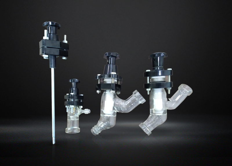 A wide variety of Glass valves are described in this section. All the valves are made of Borosilicate glass body and PTFE bellow so that the product comes into the contact with glass and PTFE only.